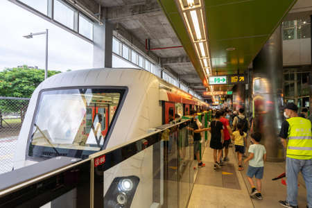 Taichung City, Taiwan - July 3, 2022 : Taichung MRT Metro system Green line HSR Taichung station platform.