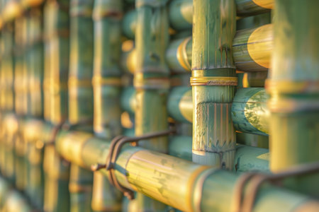 A captivating view of bamboo pipes illuminated by soft sunlight, creating an inviting and serene atmosphere perfect for interior decor or relaxation spaces.