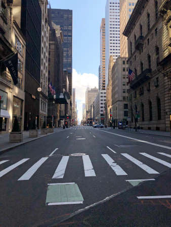 Manhattan, New York, USA. 2020. Looking south on 5th Avenue at 55th Street - Usually very busy shopping area in Midtown. Seen during the Coronavirus lockdown period.