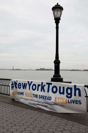 New York, USA, May 2020, New York Tough sign in Battery Park, Manhattan, during lockdown.