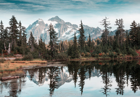 Scenic Picture lake with mount Shuksan reflection in Washington, USA