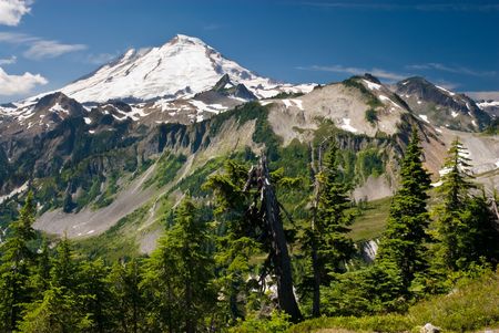 Mount Baker looms above the wilderness area near Heather Meadows. This view is from the Artist Point trail.