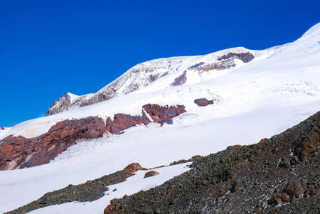 Mountain landscape with snow and clear blue sky. Caucasus, Russia