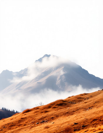 This stunning image captures a snow-capped mountain range bathed in soft morning light. The mist adds a tranquil touch to the expansive landscape, inviting exploration.