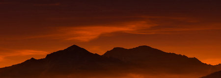 Sunset over the Caucasian mountains. Republic of Ingushetia, Russia