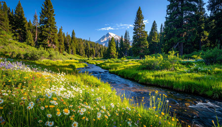 flwoery meadow and stream high in the mountains