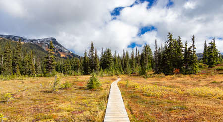 Hiking trail outdoors in Canadian nature. Sunny Fall Season. Taken in Garibaldi Provincial Park, located between Whistler and Squamish, North of Vancouver, BC, Canada.