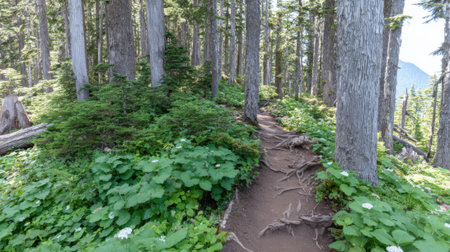 Sunrise Trail in the park Mount Rainier in the autumn, Washington, USA