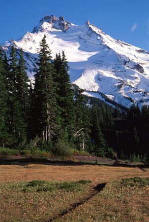 Mt Jefferson and Bays Lake in the Mount Jefferson Wilderness, Oregon.