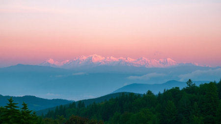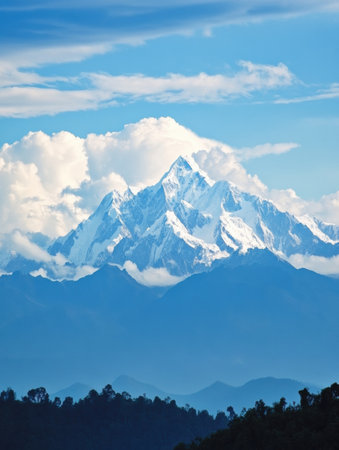Panoramic Vista of Mount Kanchenjunga Above Layered Hills