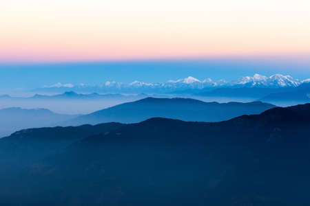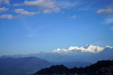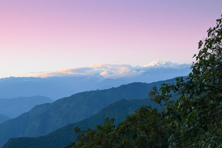 West Bengal, India - November 2, 2019: Kanchenjunga, early morning mountain landscape view from Kalimpong
