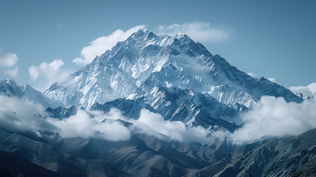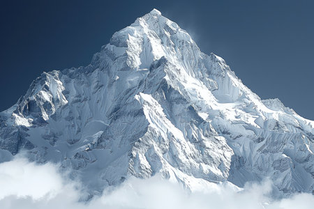 A Majestic Snow-Capped Mountain Peak Rising Above the Clouds