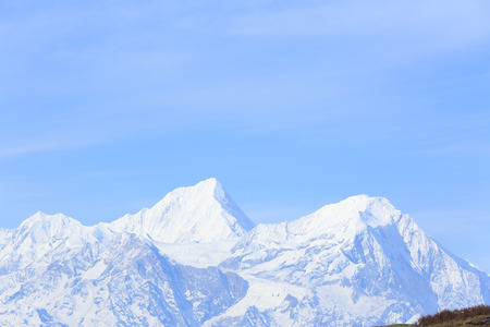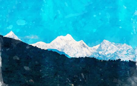 Top of High mountains, covered by snow. Kangchenjunga, India.
