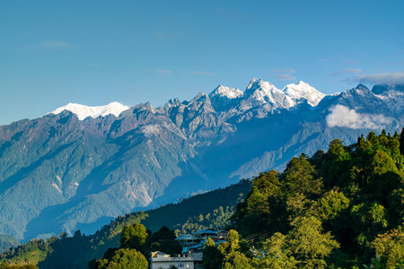 Beautiful view of Himalayan mountains at Ravangla, Sikkim. Himalaya is the great mountain range in Asia with more than 50 peaks , mostly highest, including the highest in the world.