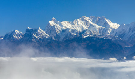 View of mount Kanchenjunga 8586 m from Eastern Nepal, the highest mount of India and third highest mountain in the world, Nepal Himalaya mountain