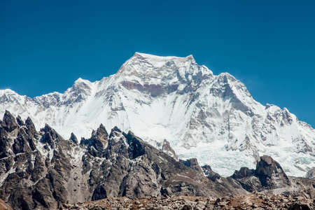 Beautiful snow-capped mountains against the blue sky. Himalaya, Nepal