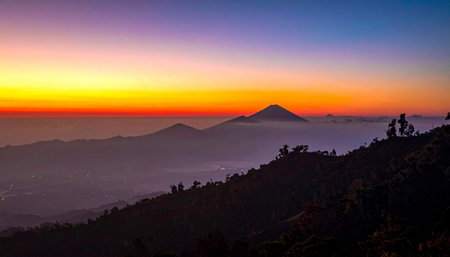 Colorful sunrise with Merapi volcano at Yogyakarta, Indoneisa