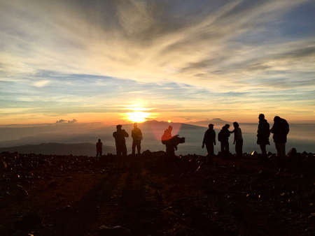 East Java, Indonesia, Aug 19, 2019. Bright morning sun at the top of Mahameru Mount Semeru