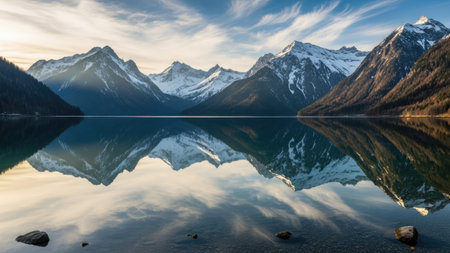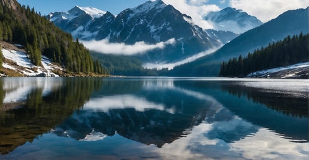 An AI generated illustration of majestic mountains revealing the majestic calm crisp beauty of nature