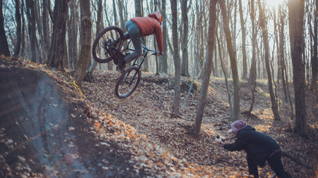 mountain biking through immersive photos, where the rush of wind in your hair accompanies your descent down challenging trails, showcasing your skill and agility