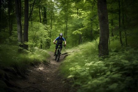 Mountain biker enjoying a ride through a lush forest, experiencing the thrill of off road cycling