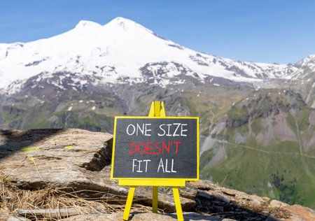 One size does not fit all symbol. Concept words One size does not fit all on beautiful blackboard. Beautiful mountain Elbrus background. Business one size does not fit all concept. Copy space.