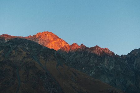 Amazing view of Kazbek mount on a sunrise panoramic view