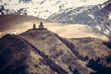 Stepantsminda, Gergeti, Georgia. Famous Gergeti Trinity Tsminda