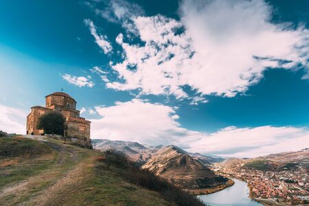 Mtskheta, Georgia. Jvari, Georgian Orthodox Monastery . Town Located At Valley Of Confluence Of Rivers Mtkvari, Kura And Aragvi. Autumn Season