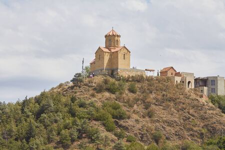 Orthodox church on top of a hill. Evening view, highlighting the building. Center Tbilisi, capital of Georgia.