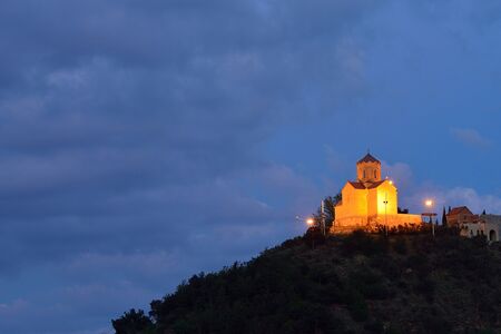 Tbilisi, Georgia Tabor Monastery of the Transformation church on the hill, sunset view