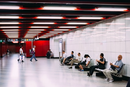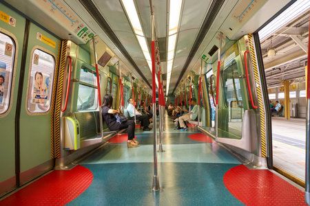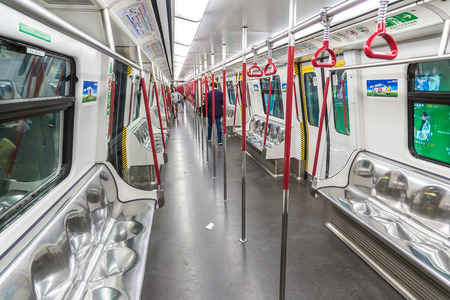 HONG KONG - APRIL 22: metro interior in Hong Kong, China on 22 April 2014. The Mass Transit Railway (MTR) is the rapid transit railway system in Hong Kong It is one of the most profitable systems in the world