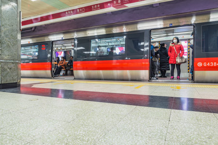 Beijing, China - January 05, 2017: Interior of the metro station.