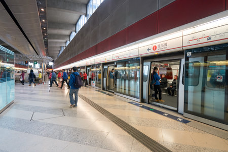 HONG KONG - CIRCA JANUARY, 2016: inside MTR station in Hong Kong. MTR is the rapid transit railway system in Hong Kong. It is one of the most profitable systems in the world