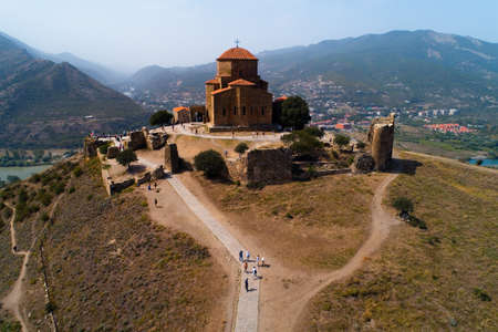 Mtskheta, Georgia, September 3, 2018: Monastery of the Holy Cross. Aerial photography.