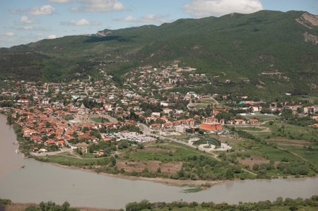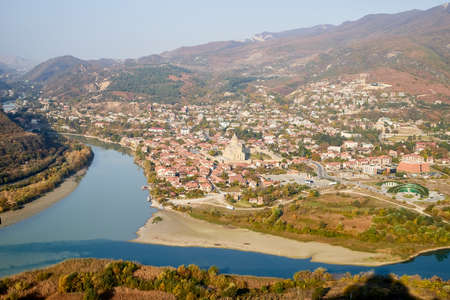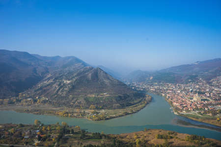 The top view of Mtskheta, Georgia. The rivers Mtkvari and Aragvi