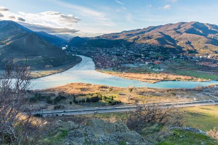 Mtskheta town before sunset where the confluence of the Mtkvari and Aragvi rivers.
