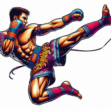 illustration of a kickboxer in action on a white background