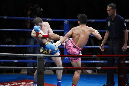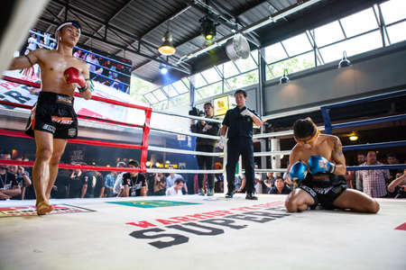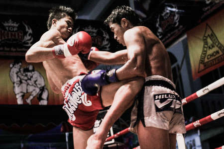 Bangkok Thailand November 11 2018. Unidentified Thai and foreign kick boxing players in competition fight Muay Thai Super Champ at Muay Thai Street Bangkok. Thai kick boxing. Illustrative Editorial.