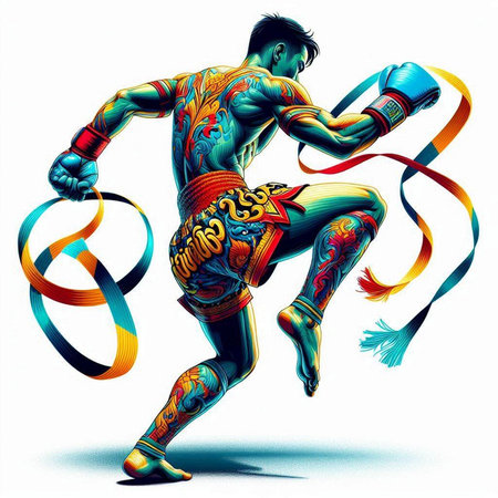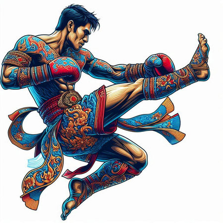 Muay Thai, The martial art of Thailand, A boxer with the weapon of kick the neck the opponent's throat.