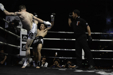 NONTHABURI - JULY 23 : Ying Pengpeng of China and Richard Fanous of Australia in Thai Fight Proud to be Thai on July 23, 2016 at West Gate Hall, CentralPlaza WestGate, Bang Yai, Nonthaburi.