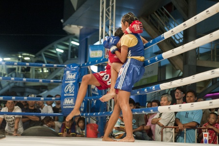 BANGKOK, THAILAND-SEPT 25 Unidentified fighters fight Muaythai at Thai Fight Muay Thai The World s Unrivaled Fight at Thammasat University stadium on September 25, 2011 in Bangkok,Thailand