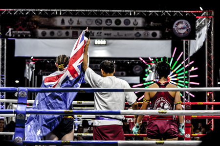 BANGKOK, THAILAND - 13 MAR : The winner of Kick boxing fighter at boxing ring on 13 March 2019 in Bangkok, Thailand