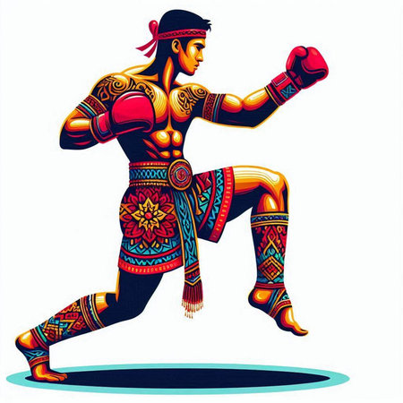 Muay Thai, Thai boxing. Thai martial arts. Vector illustration