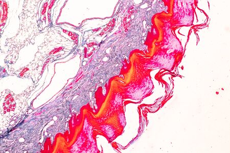 Education anatomy and Histological sample of Human under the microscope.