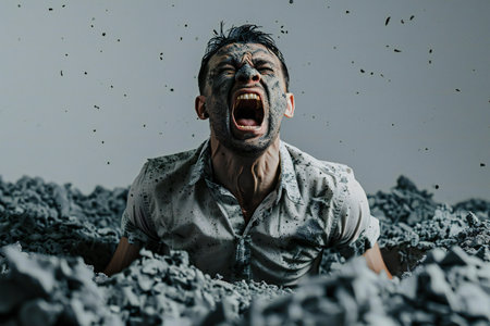 Digital image of angry man yelling on the ground, high quality, high resolution
