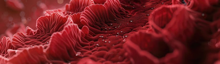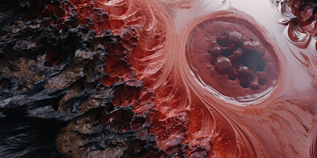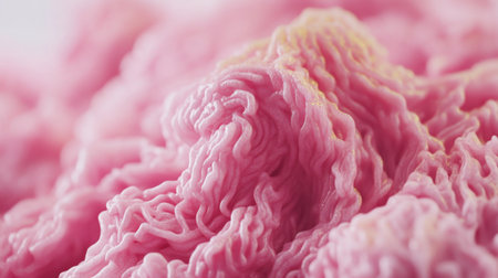 This captivating close-up image showcases a pink organic texture with intricate patterns and soft curves, evoking fluidity and natural forms.
