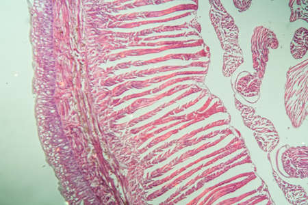 Tissue of Small intestine (Duodenum), Large intestine Human and Stomach Human under the microscope in Lab.