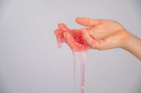 Kid Playing Hand Made Toy Slime, Selective focus on Slime