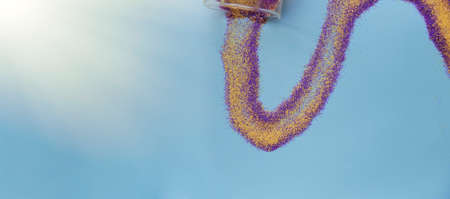 Creative colorful sand flows on blue background. Place for text or product promotion. Copy space. High quality photo